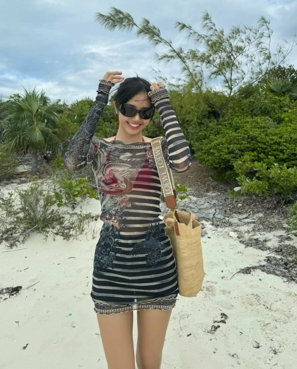 Beige And Black Striped Mesh Dress | Lisa – BlackPink
