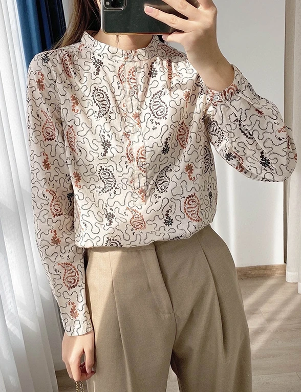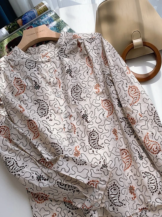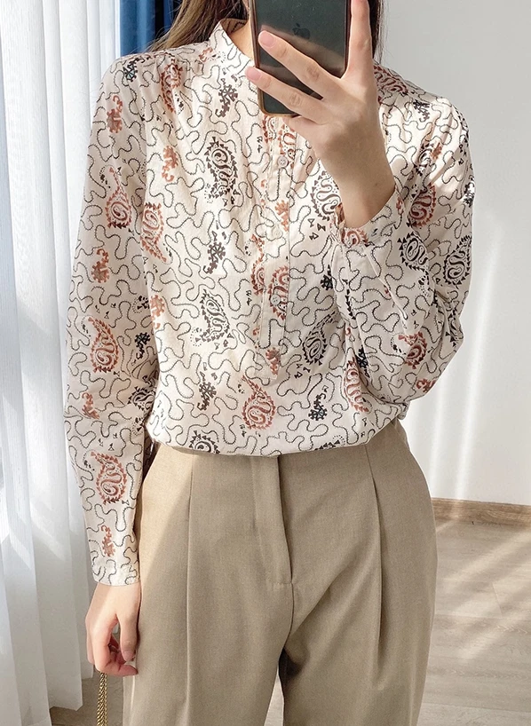 Beige Paisley Long Sleeve Shirt | Jungkook – BTS