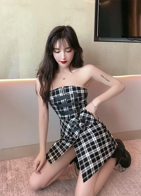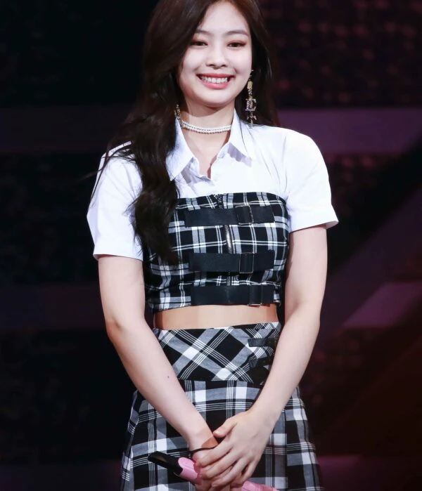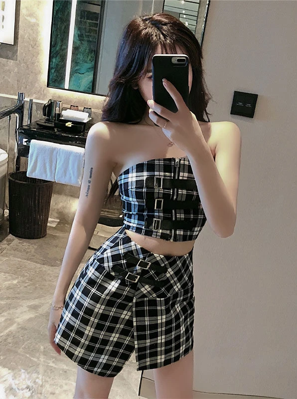Black And White Plaid Tube Crop Top | Jennie – BlackPink