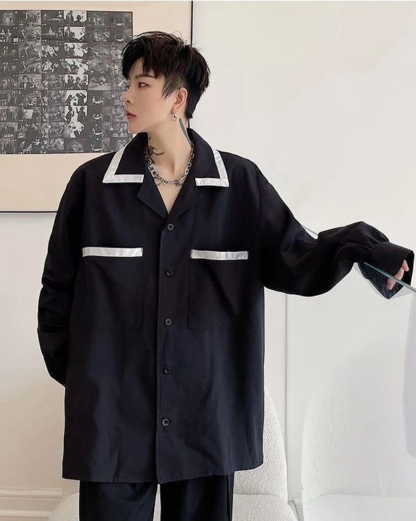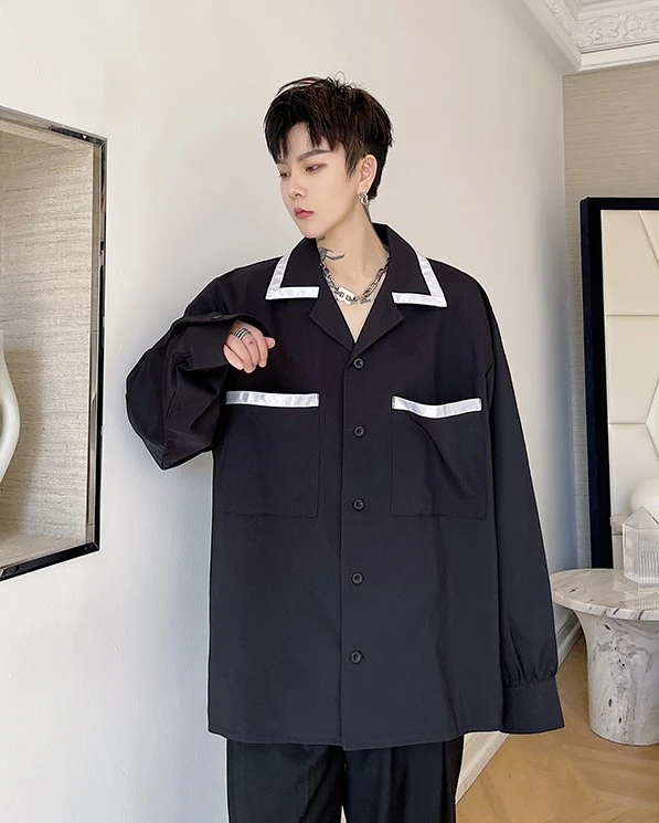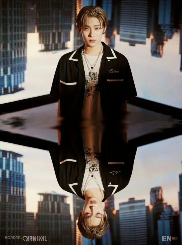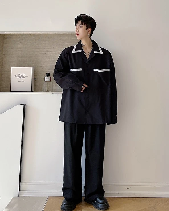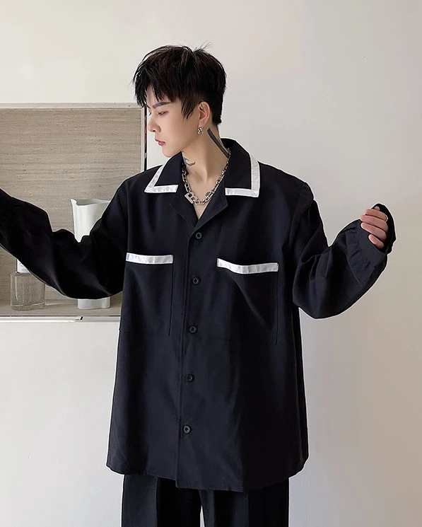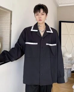 Black Button-Down Shirt With Lined Collar | Sunoo – Enhypen