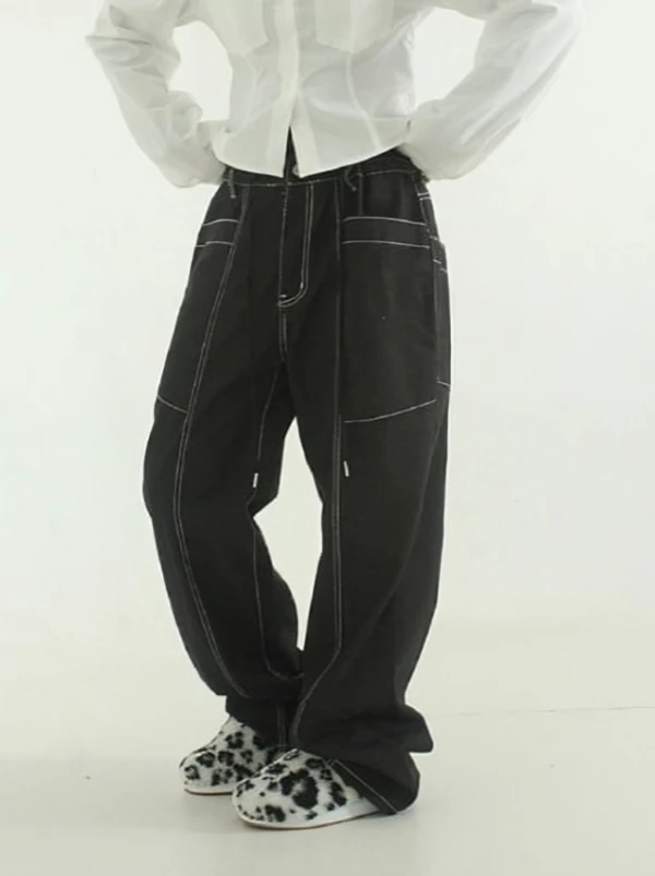 Black Contrasting Topstitch Jeans | Hyunjin – Stray Kids
