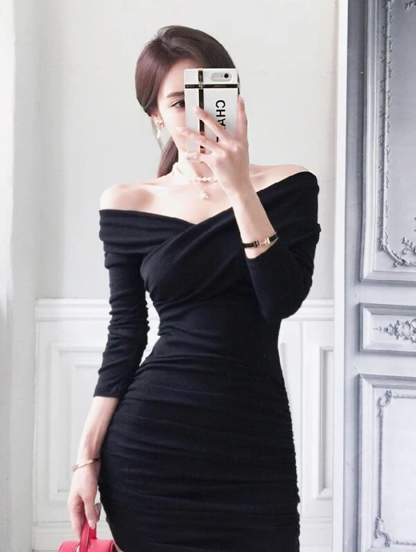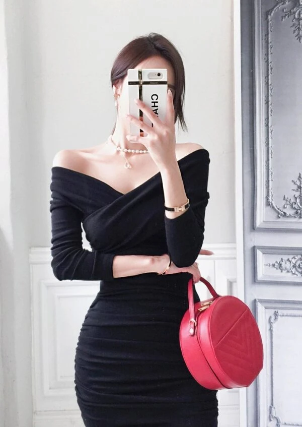 Black Cross Front Off-Shoulder Dress | Irene – Red Velvet