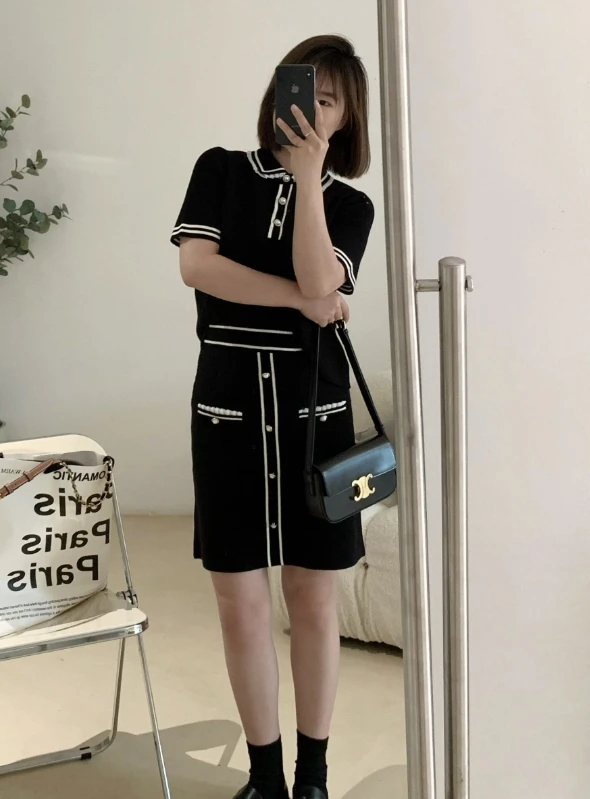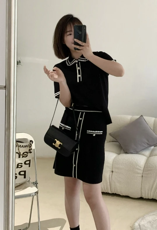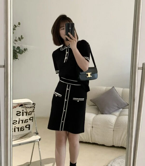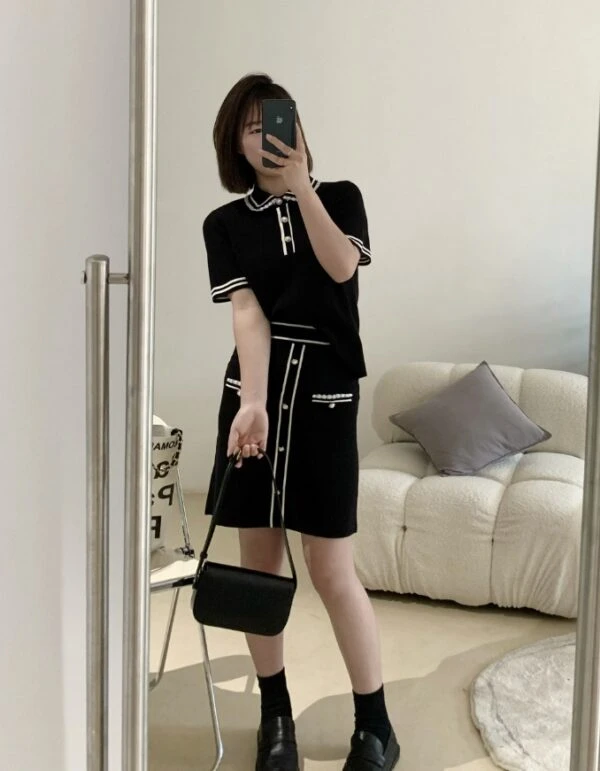 Black Doll Collar Knit Polo Shirt | Jisoo -BlackPink