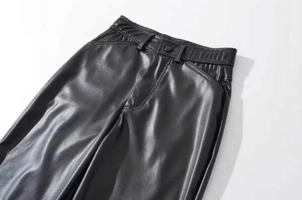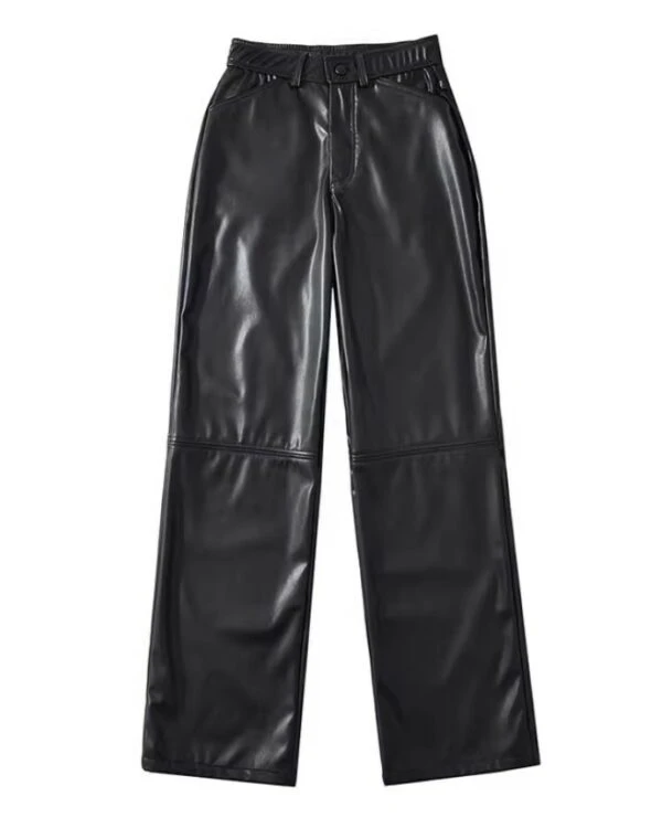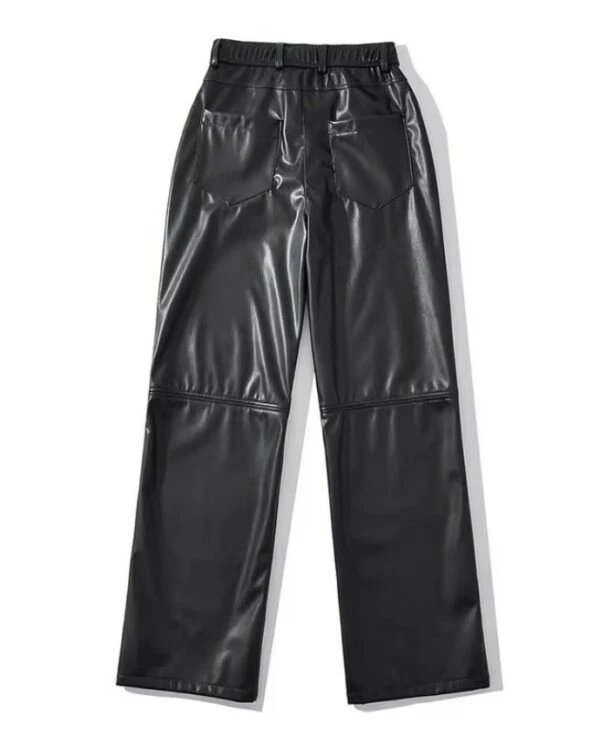 Black Faux Leather Straight Cut Pants | Jungkook – BTS