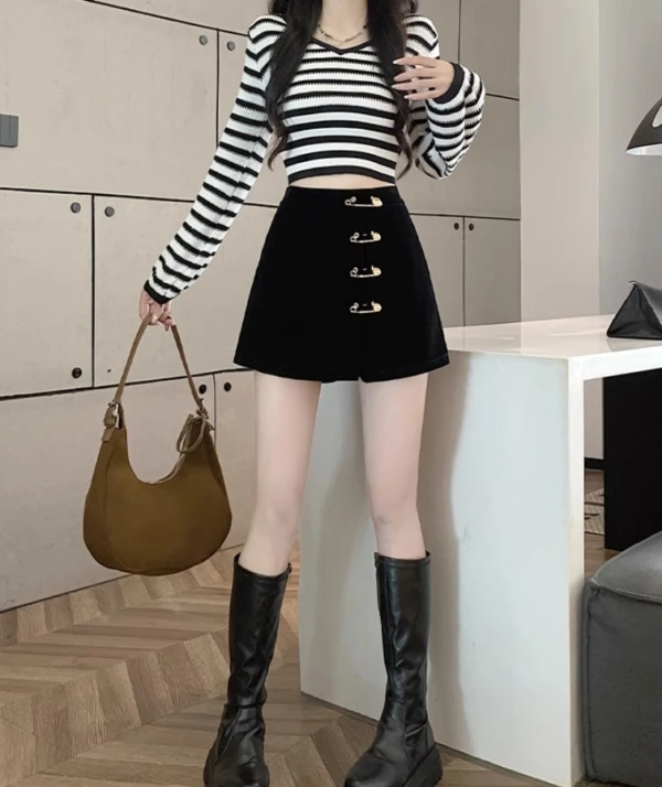 Black Mini Skort With Pins | Chaeyoung- Twice