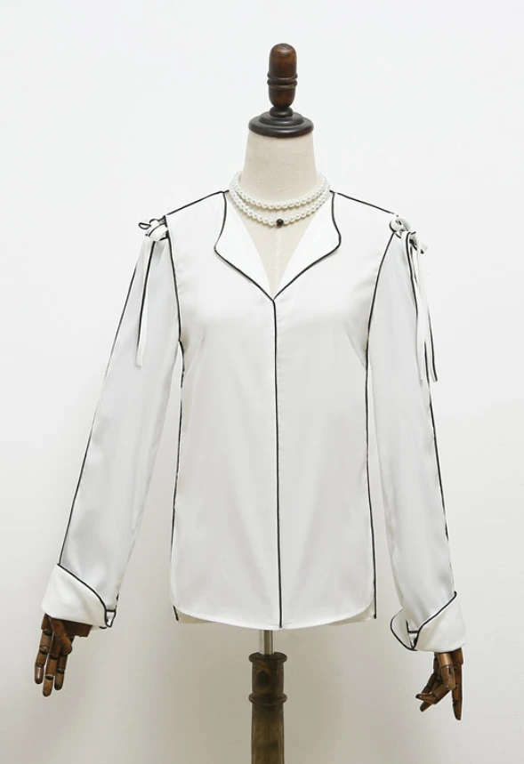 Black Outlined White Silk-Like Shirt | IU