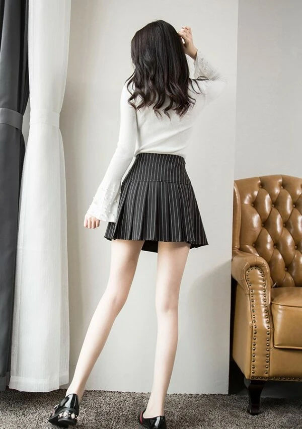 Black Pleated Striped High Waist Skirt | Jisoo – BlackPink