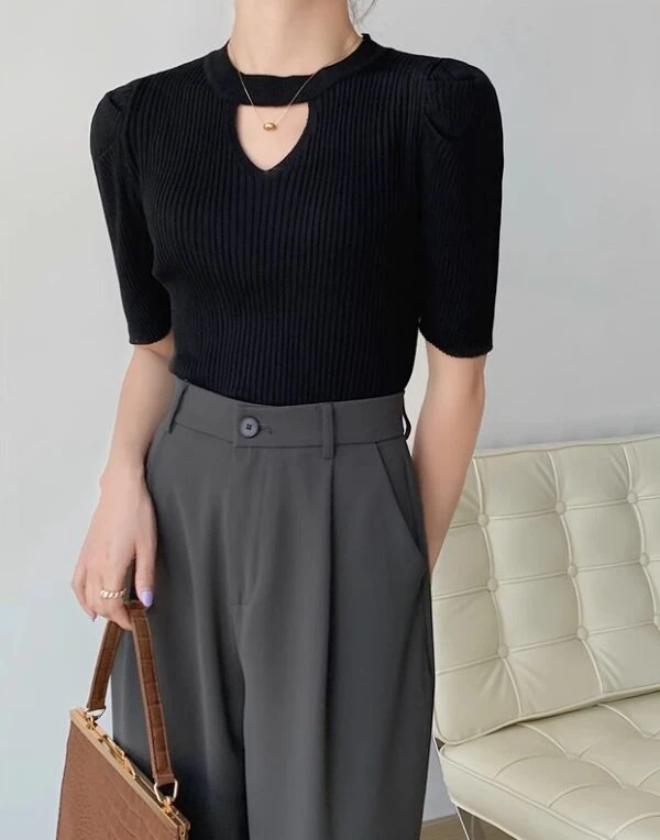 Black Ribbed Hollow Neck Top | Jihyo – Twice
