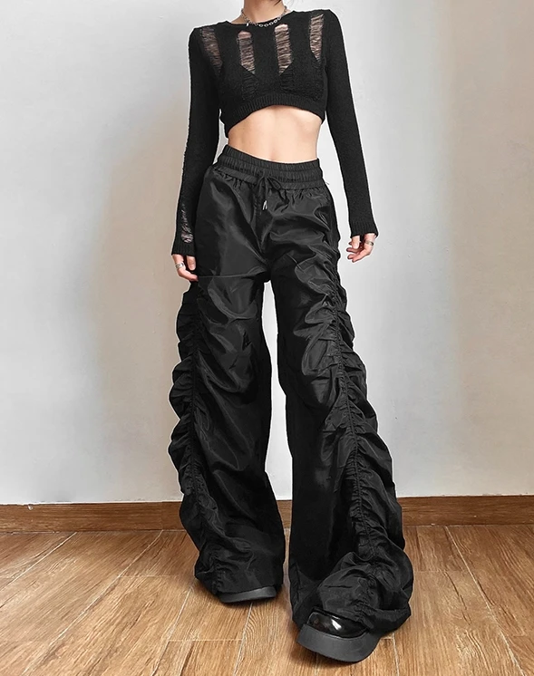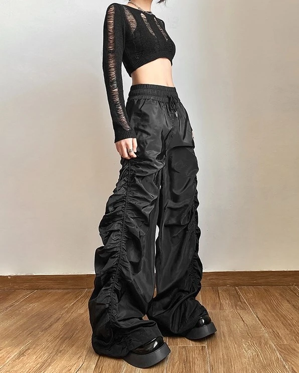 Black Ruched Wide Leg Pants | Chaewon – Le Sserafim