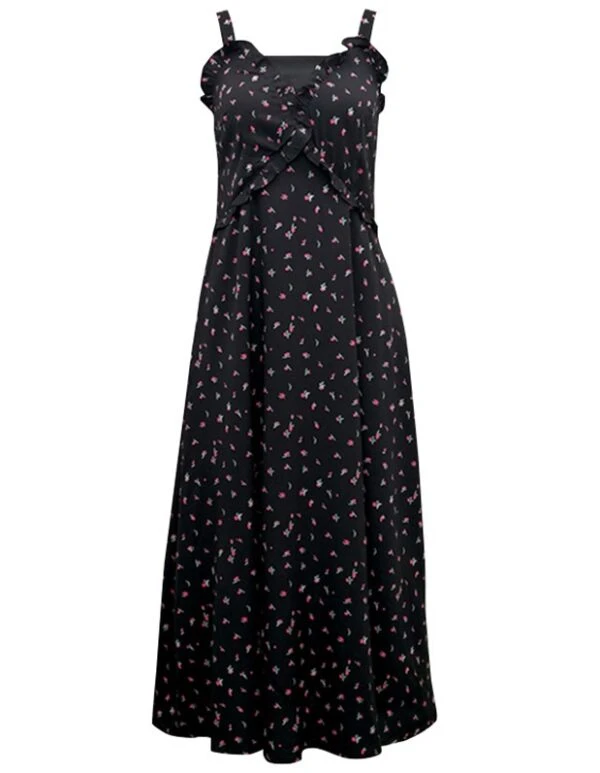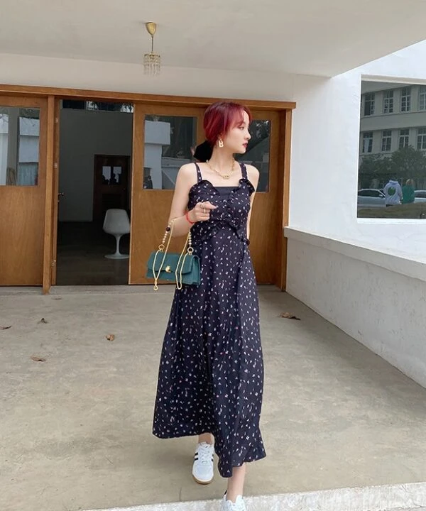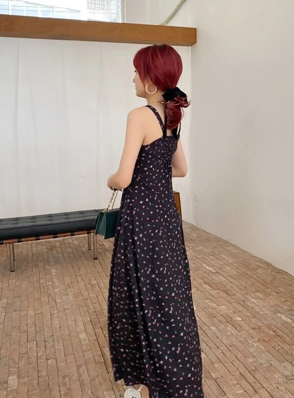 Black Sling Dress With Floral Pattern | Lisa – Blackpink