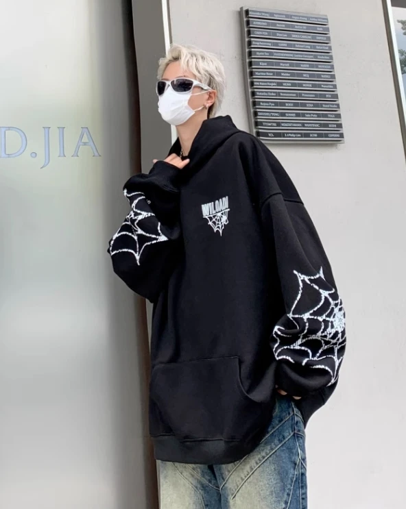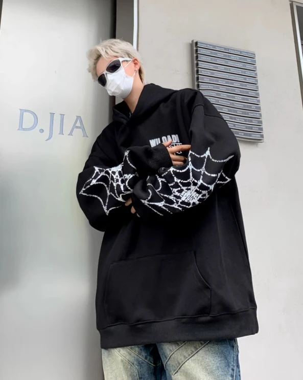 Black Spider Web Printed Hoodie | Felix – Stray Kids