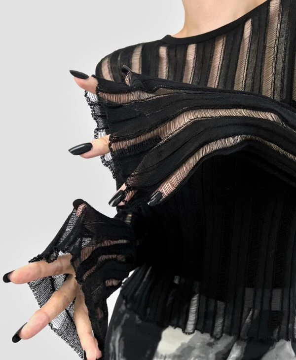 Black Striped Long Sleeves Mesh Top | Yiren – Everglow