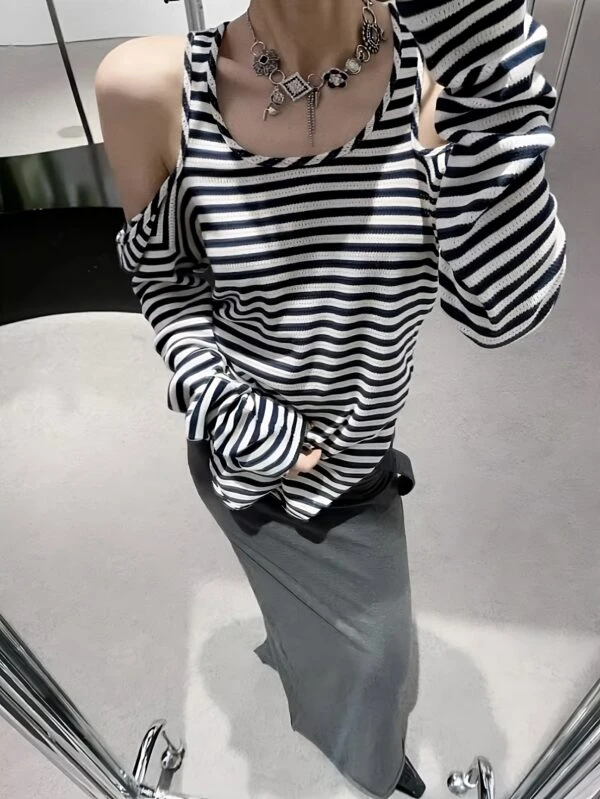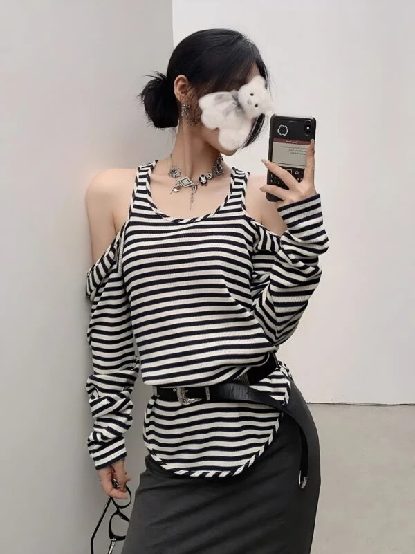 Black Stripes Shoulder Cut-Out Top | Hanni – NewJeans
