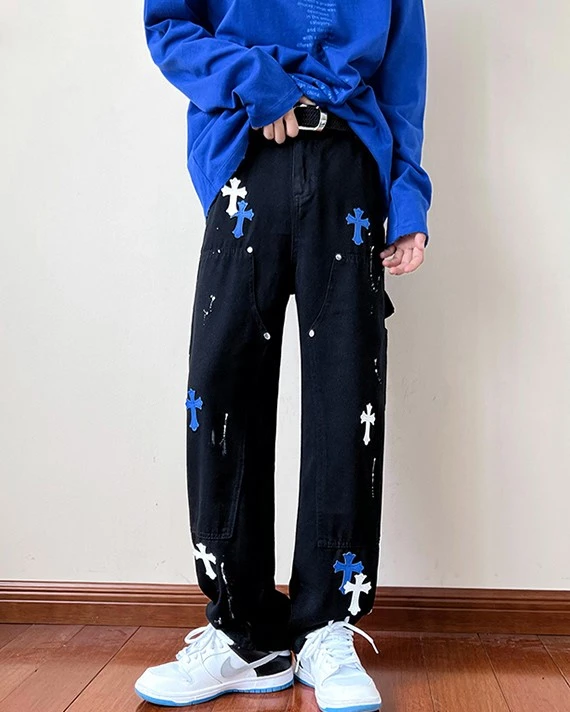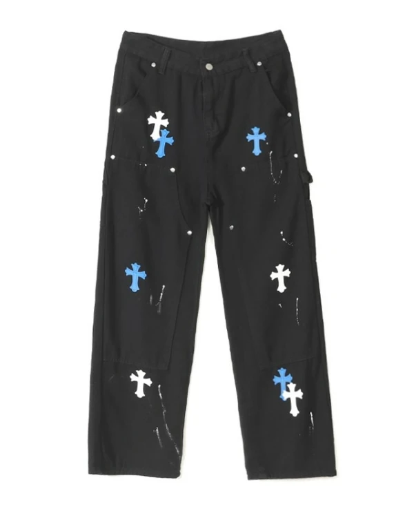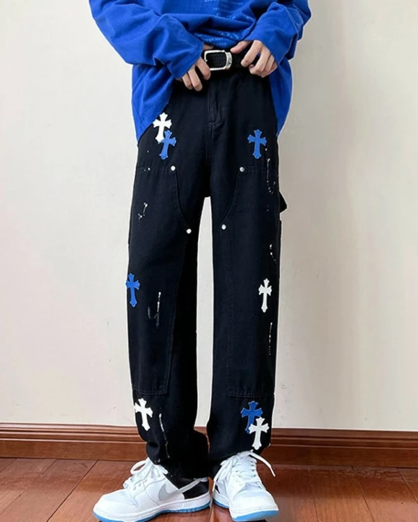 Black Wide Leg Pants With Blue Cross Details | Mark – NCT