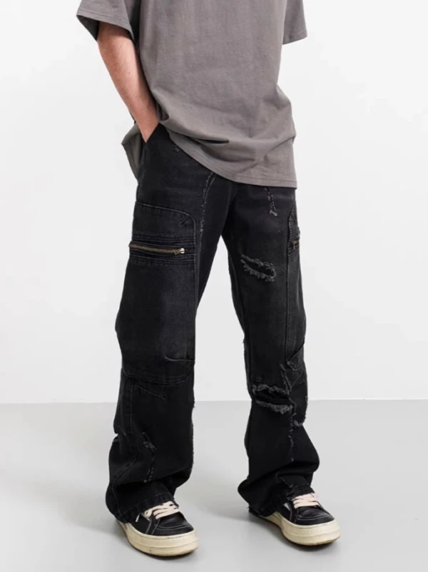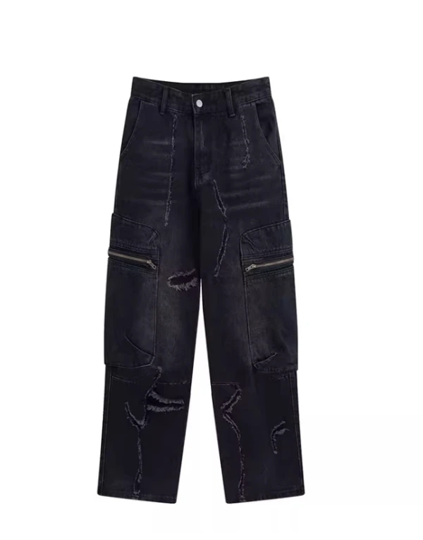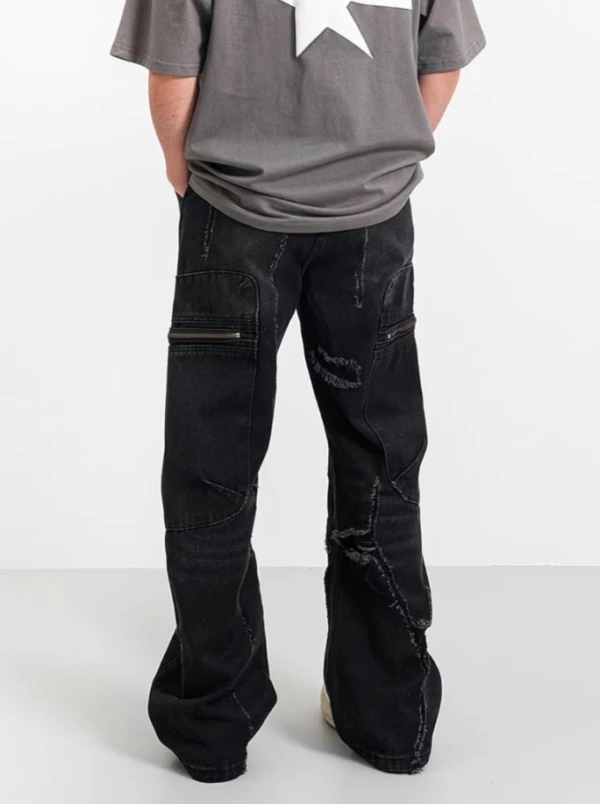 Black Zipper Pocket Distressed Jeans | Yunho – ATEEZ