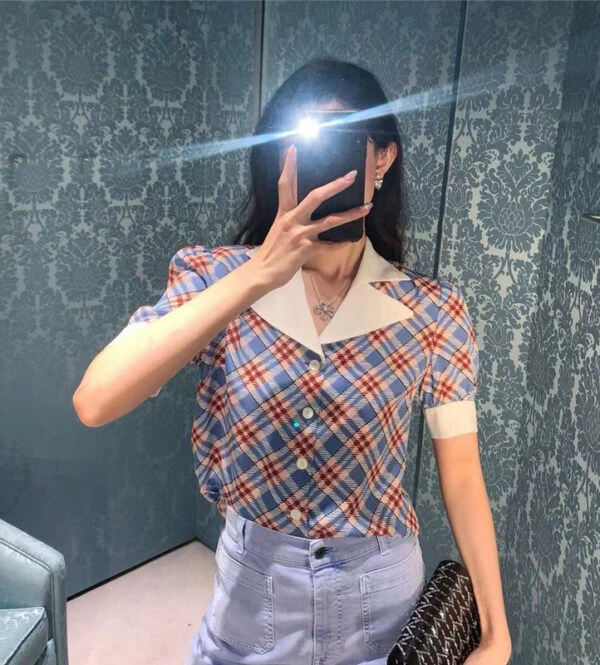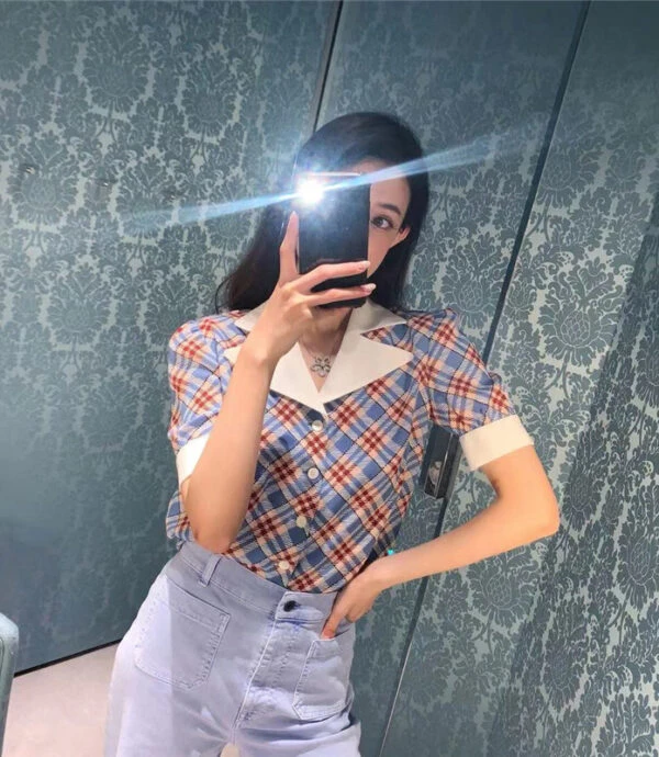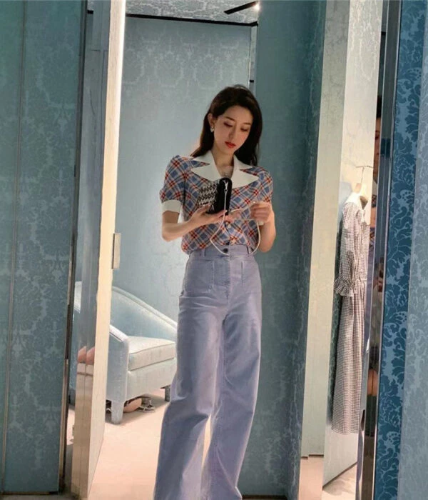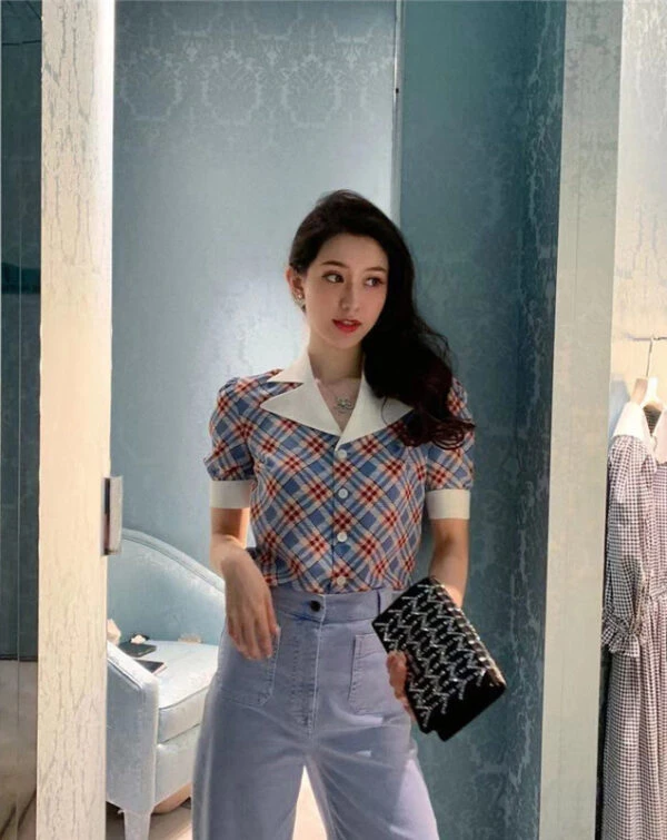 Be the first to review “Blue Collared Check Print Blouse | Wendy – Red Velvet” Cancel reply