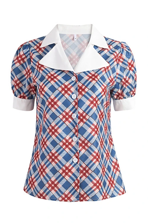Blue Collared Check Print Blouse | Wendy – Red Velvet