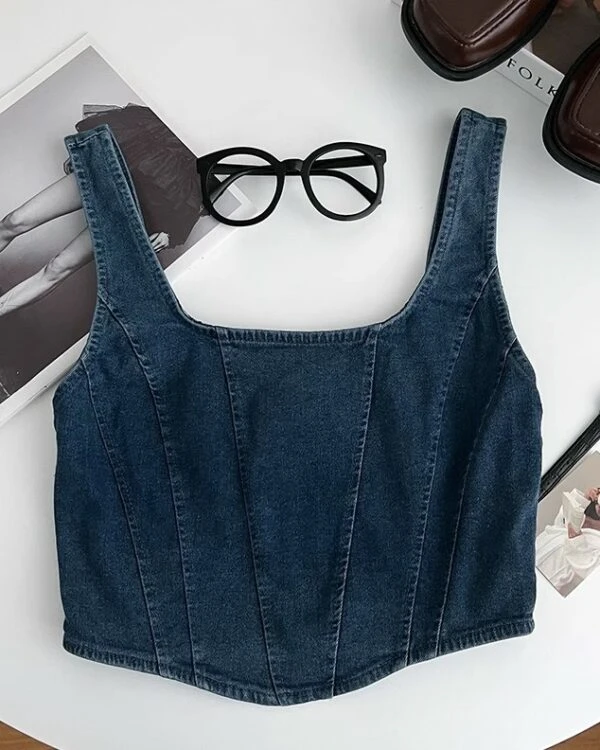 Blue Denim Corset-Style Crop Top | Sana – Twice