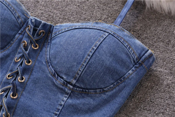 Blue Denim Lace-Up Crop Top | Olivia – Loona