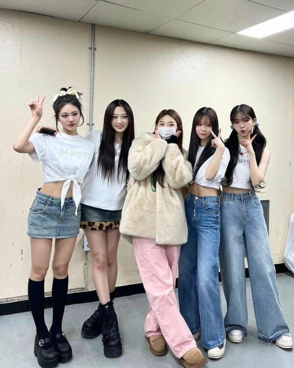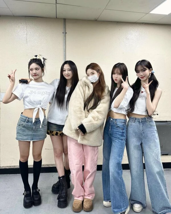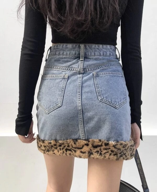 Blue Faux Leopard Fur Denim Skirt | Giselle – Aespa