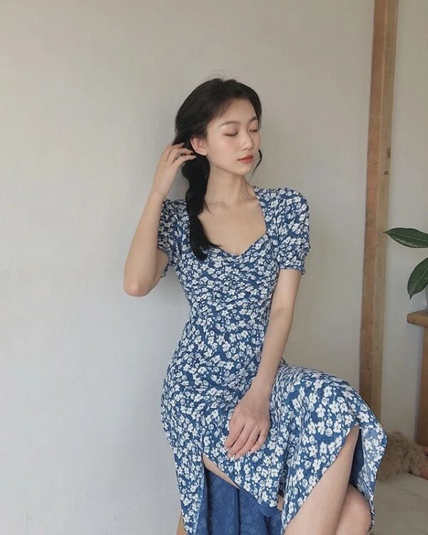 Blue Floral Side Slit Dress | Jisoo – BlackPink