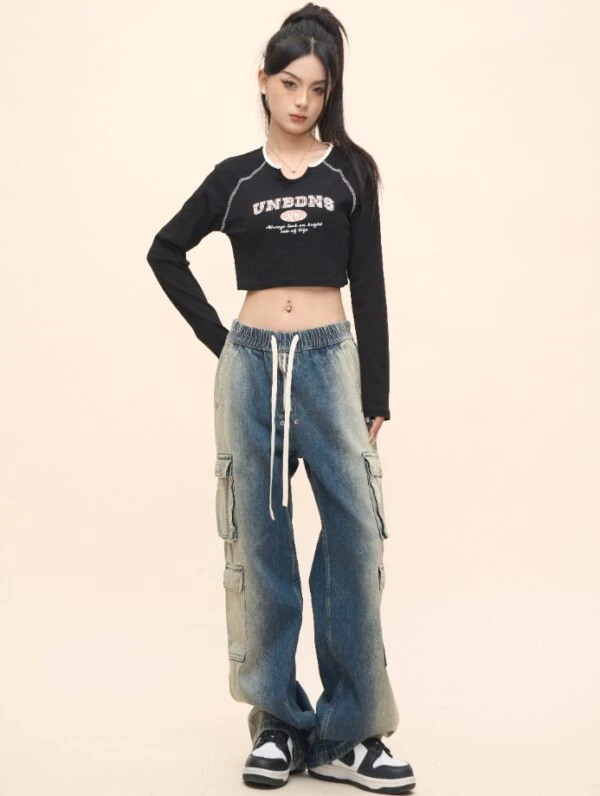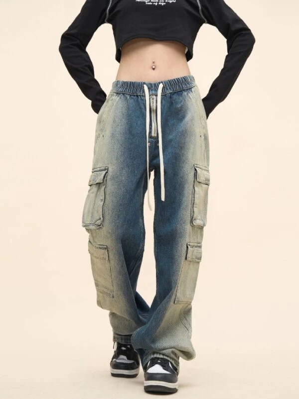 Blue Gradient Washed Cargo-Style Jeans | Suga – BTS