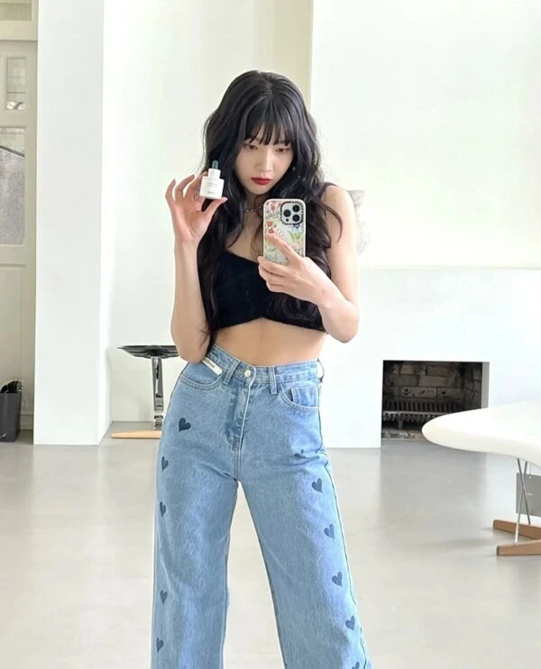 Blue Heart Stamped Denim Jeans | Joy – Red Velvet