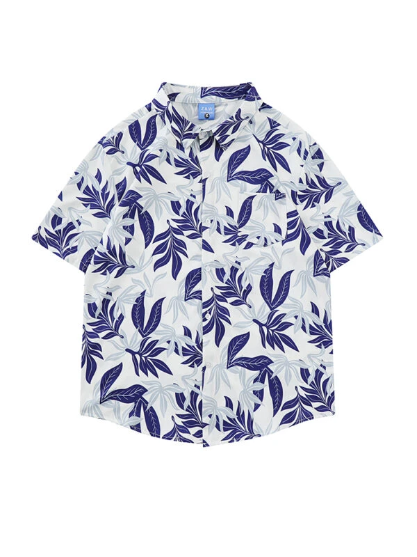 Blue Leaves Pattern Collared Shirt | Jungkook – BTS