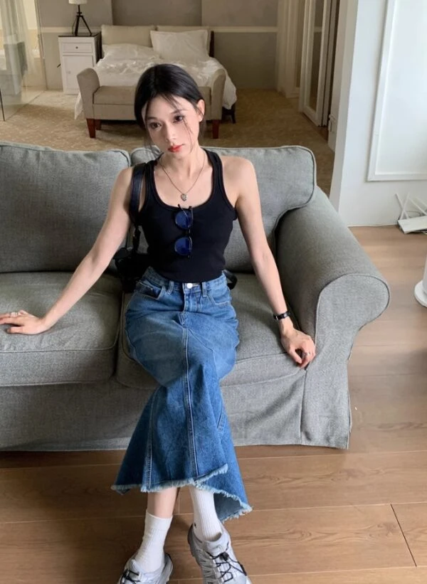 Blue Long Back Slit Denim Skirt | Haerin – NewJeans
