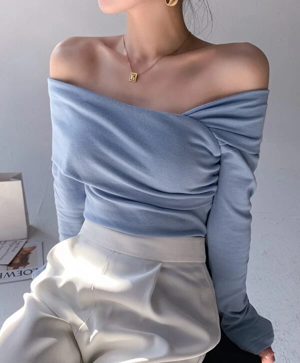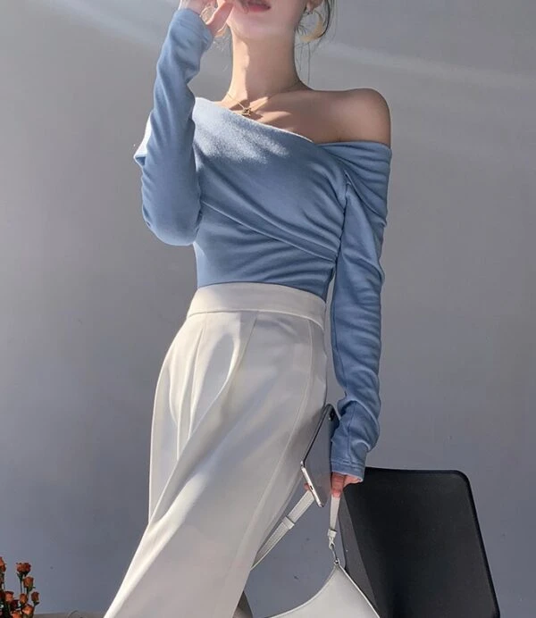 Be the first to review “Blue Oblique Shoulder Top | Karina – Aespa” Cancel reply