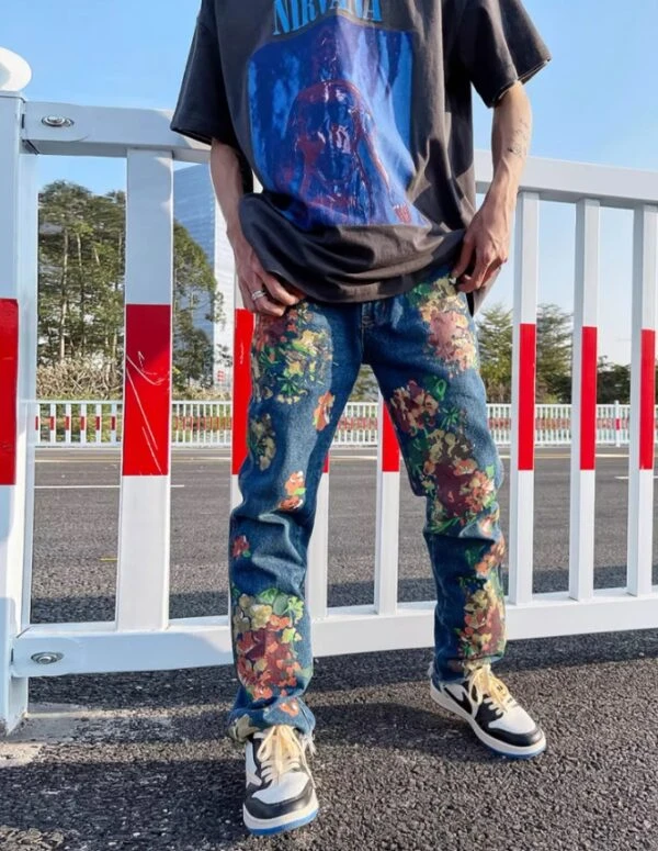 Blue Painted Floral Jeans | Hyunsuk – Treasure