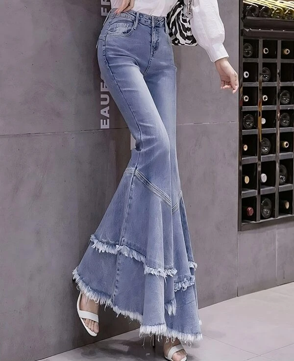 Blue Raw Edges Mermaid Jeans | Haerin – NewJeans