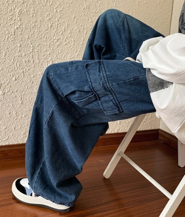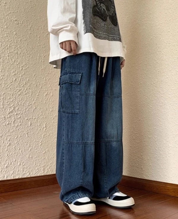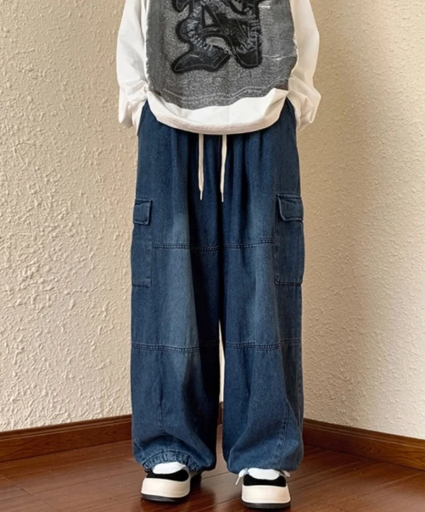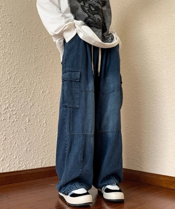 Blue Shoe Laced Waist Cargo Jeans | Joy – Red Velvet