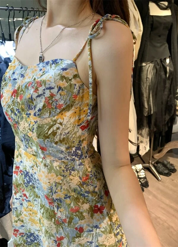 Green Oil Painting Design Floral Sling Dress | Sullyoon – NMIXX
