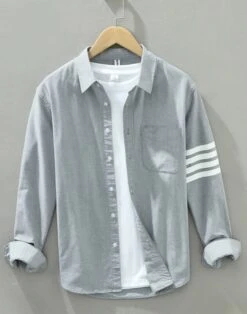 Be the first to review “Grey Four-Bar Button-Up Shirt | Jin – BTS” Cancel reply