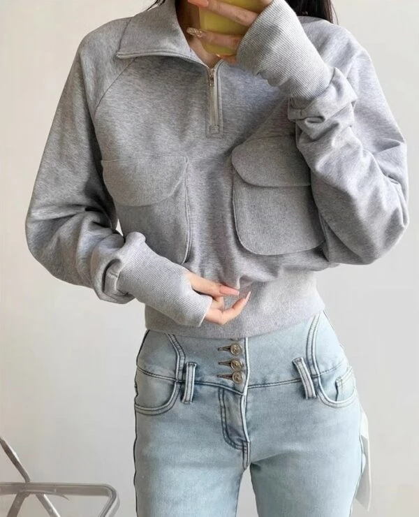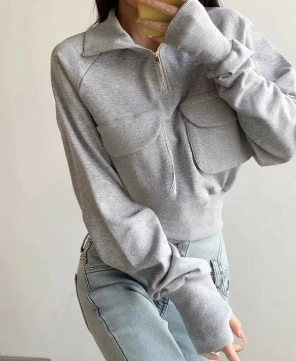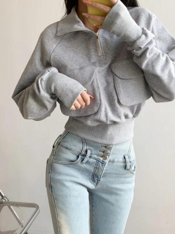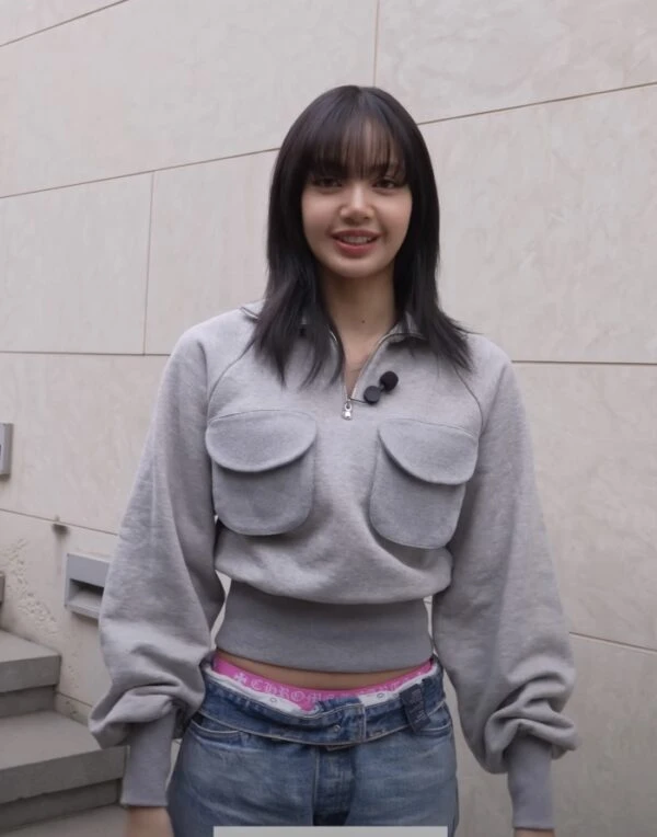 Grey Half-Zip Collared Sweatshirt | Lisa – BlackPink
