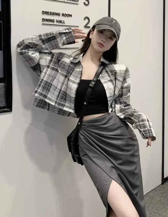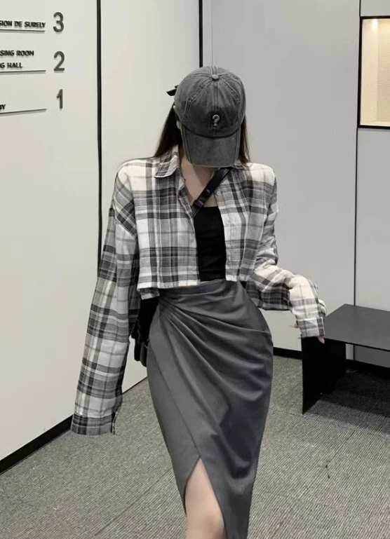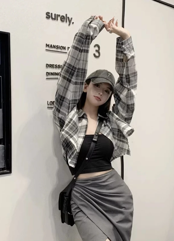 Grey Plaid Cropped Shirt | Yeji – ITZY