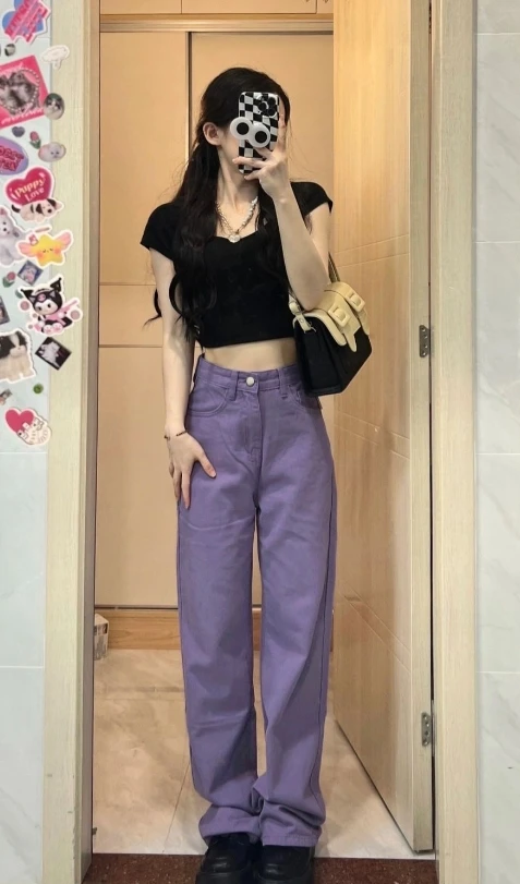 Lilac Loose High Waisted Jeans | Kyujin – NMIXX