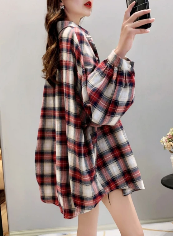 Loose Plaid Long-Sleeved Shirt | Hyunjin – Loona