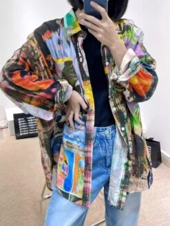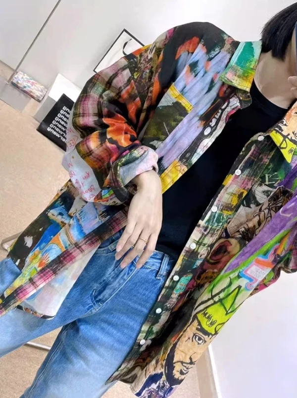 Multicolored Artsy Graffiti Plaid Shirt | Hoshi – Seventeen