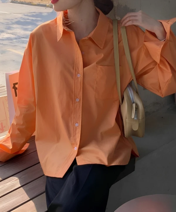 Orange Button-Up Single Pocket Shirt | Sunghoon – Enhypen