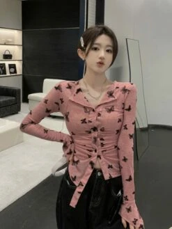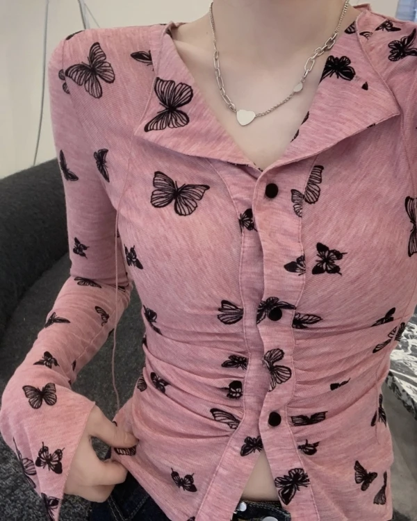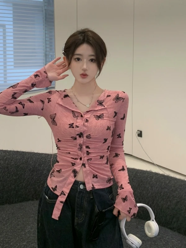 Pink Button-Up Butterfly Print Shirt | Siyeon – Dreamcatcher