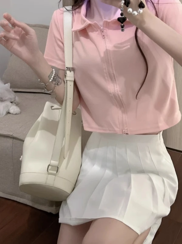 Pink Collared Dual Zipper Top | Juria – XG
