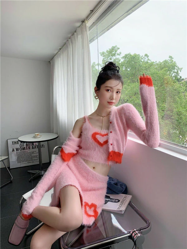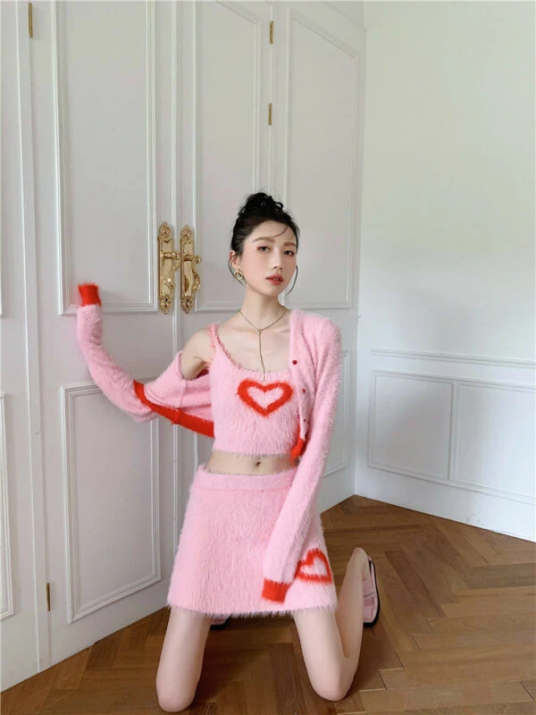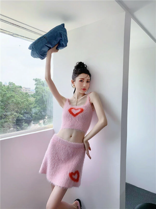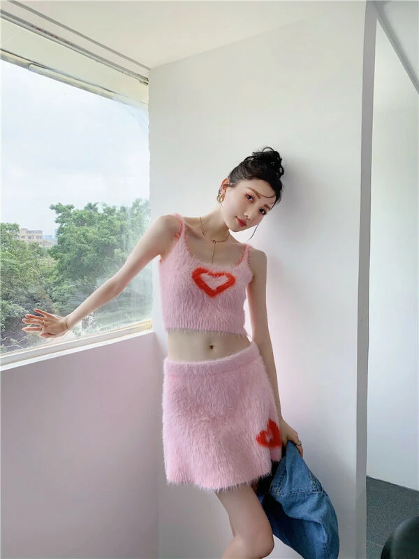 Pink Heart Fur Camisole Crop Top | Joy – Red Velvet