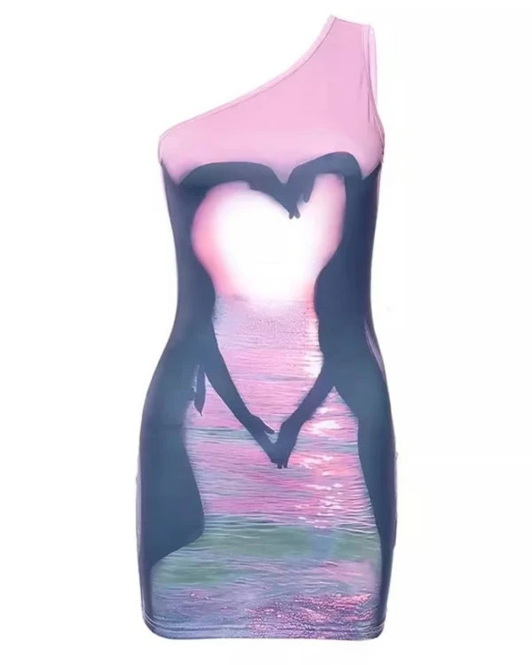 Pink One Shoulder Heart Silhouette Dress | Maya – XG