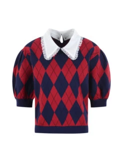 Red Short Puff Sleeve Argyle Top | Dahyun – Twice