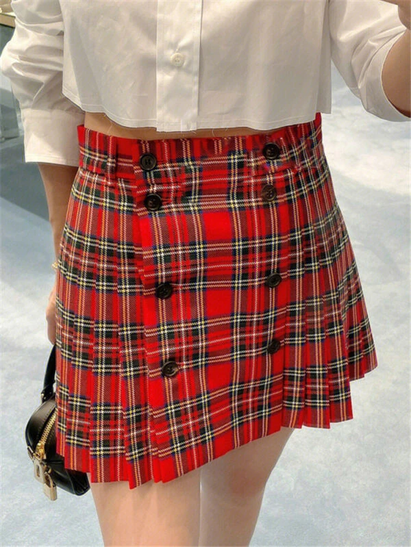 Red Side Pleat Plaid Mini Skirt | Wonyoung – IVE