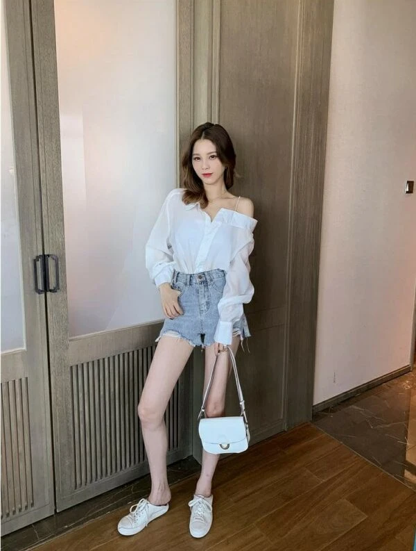 White Asymmetrical Off Shoulder Blouse | Nayeon – Twice