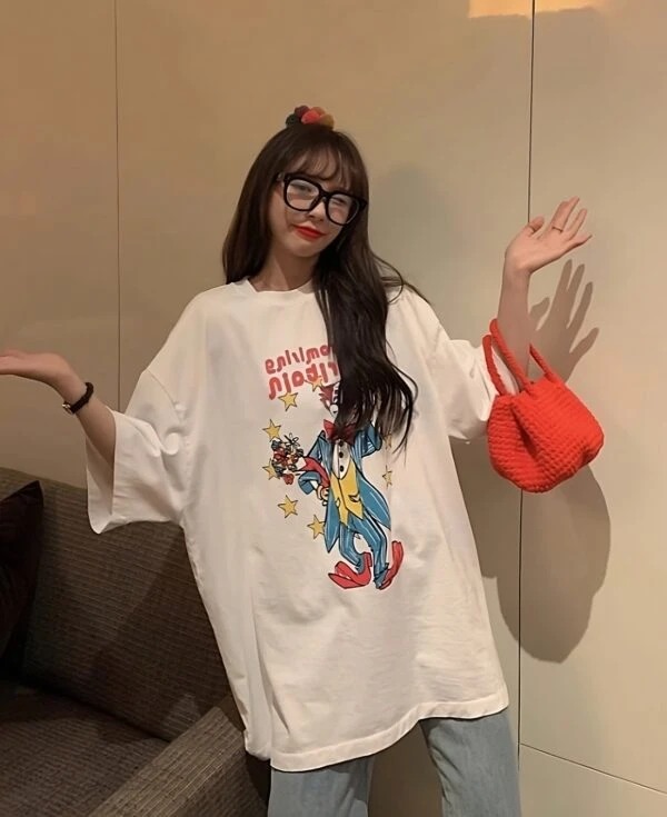 White Clown Print Oversized T-Shirt | Beomgyu – TXT