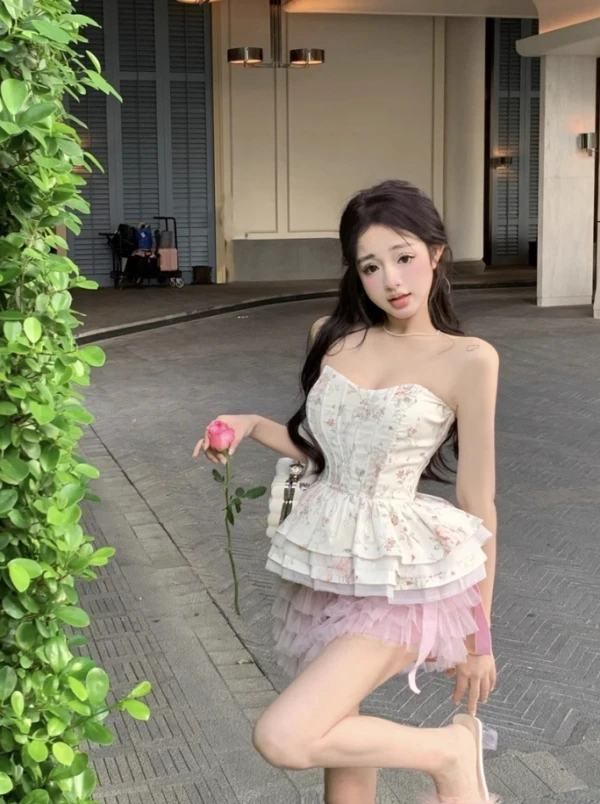 White Floral Peplum Corset Tube Top | Jennie – BlackPink